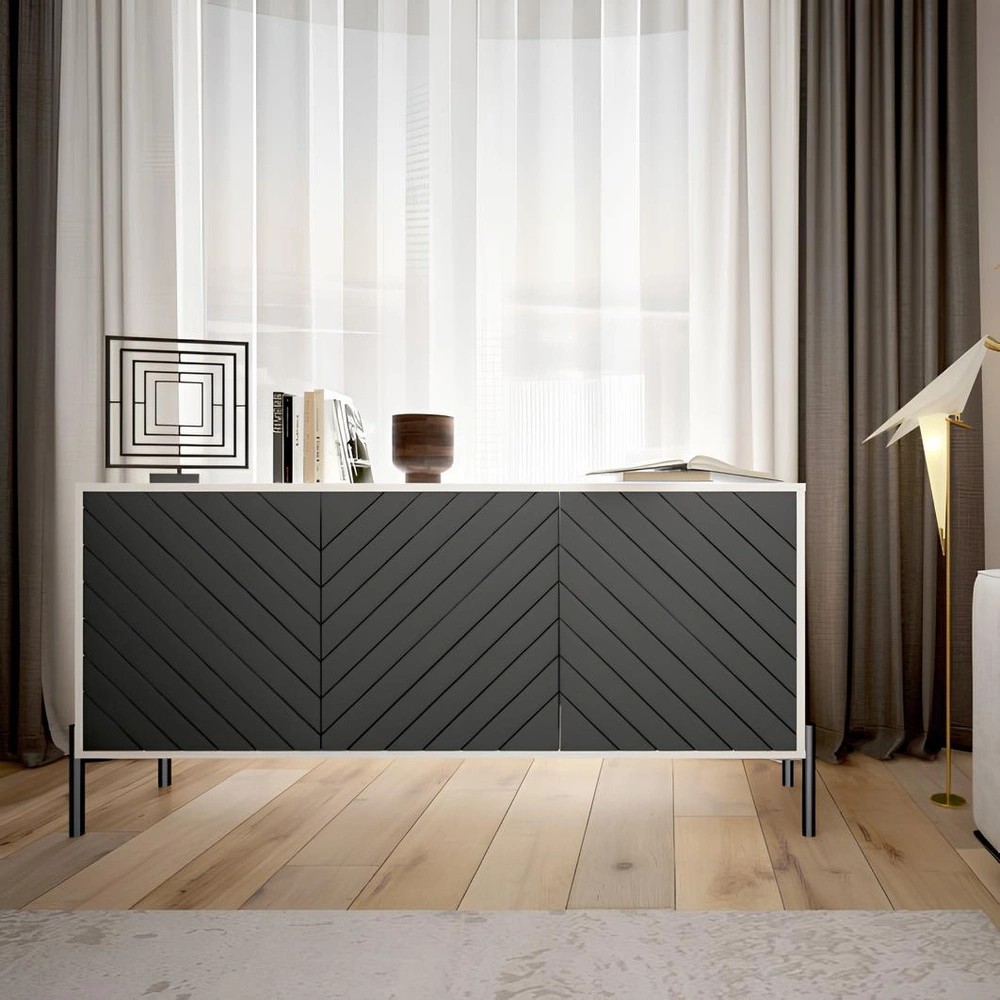 Черные металлические ножки придают тумбе современный вид, а также обеспечивают надежность и устойчивость. Лаконичный белый и графитовый цвет гармонично сочетаются, подчеркивая эстетику вашего дома. Благодаря продуманной конструкции вы сможете с легкостью организовать пространство вокруг телевизора, сохраняя порядок и стиль.