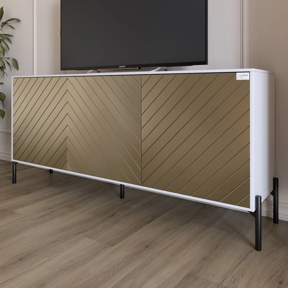 Тумба під телевізор із чорними металевими ніжками LION Амарант 168x40x76,5 см Німфея Альба (білий)/П