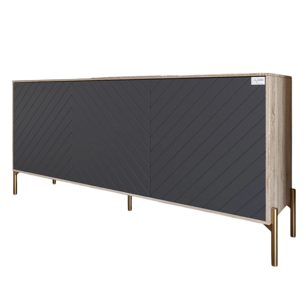 Тумба під телевізор із золотими металевими ніжками LION Амарант 168x40x76,5 см Дуб сонома/Графітовий