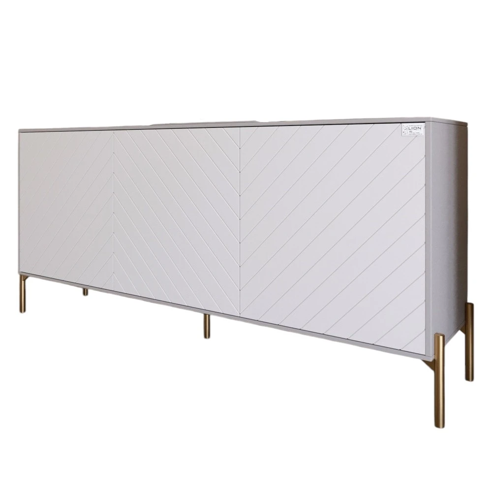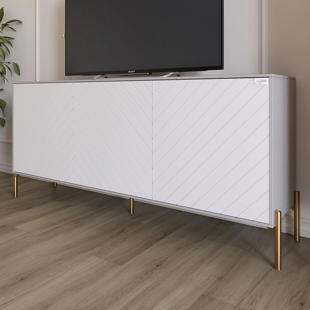 Тумба під телевізор із золотими металевими ніжками LION Амарант 168x40x76,5 см Кашемір/Білий (LION-0