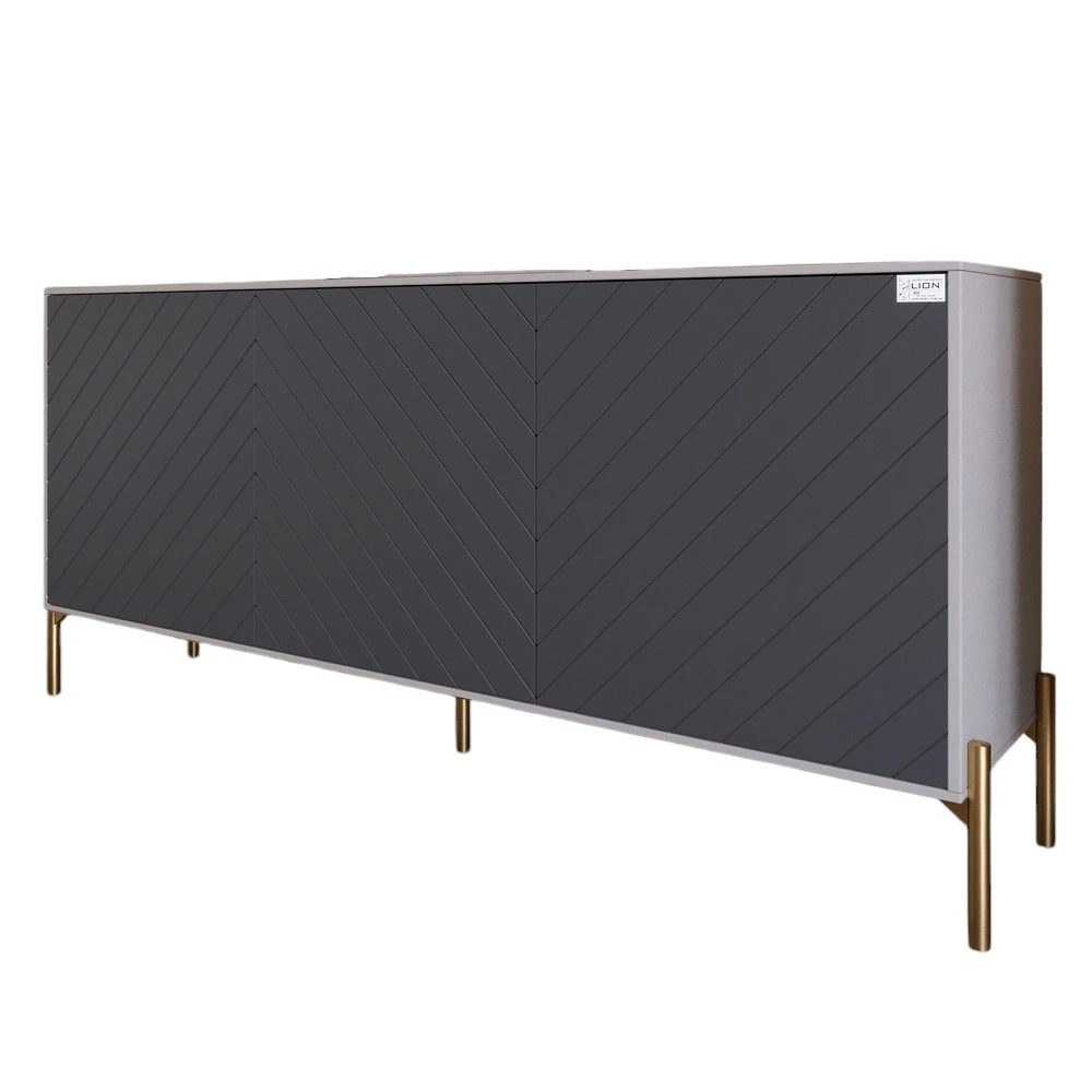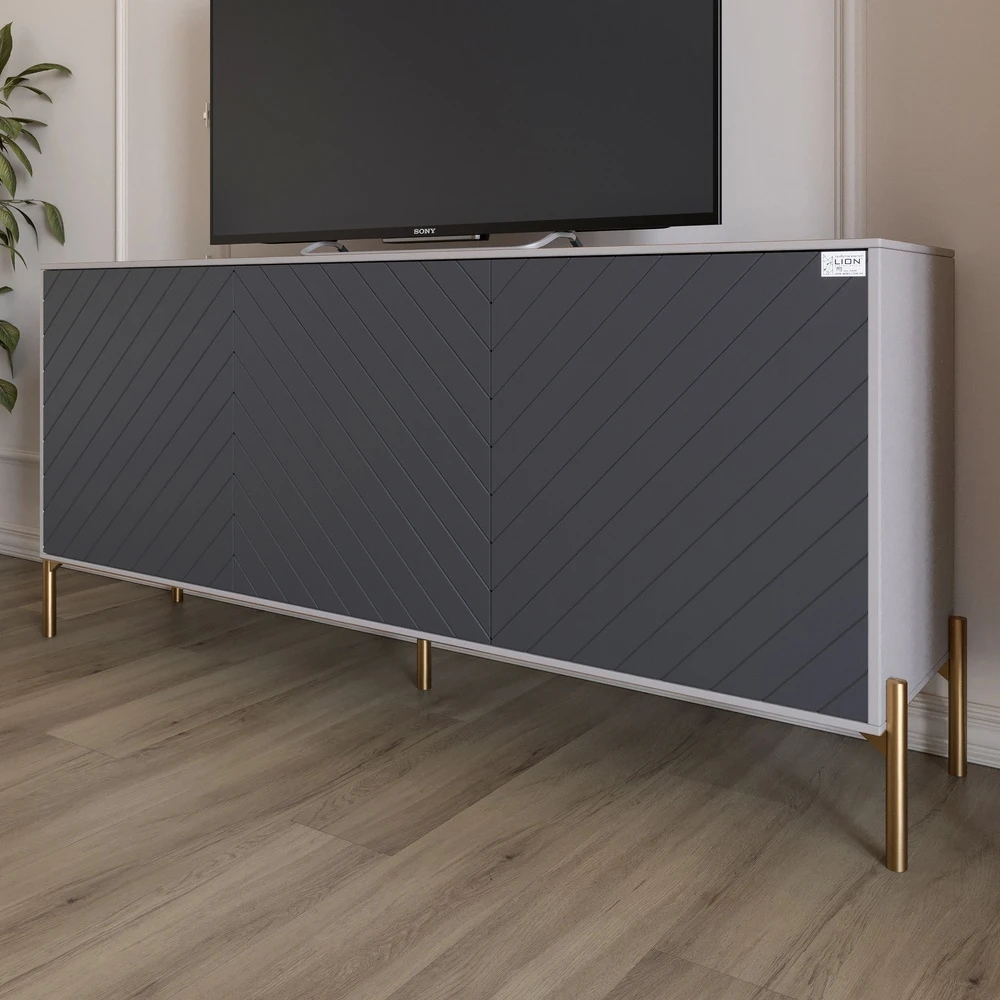 Тумба під телевізор із золотими металевими ніжками LION Амарант 168x40x76,5 см Кашемір/Графітовий (L