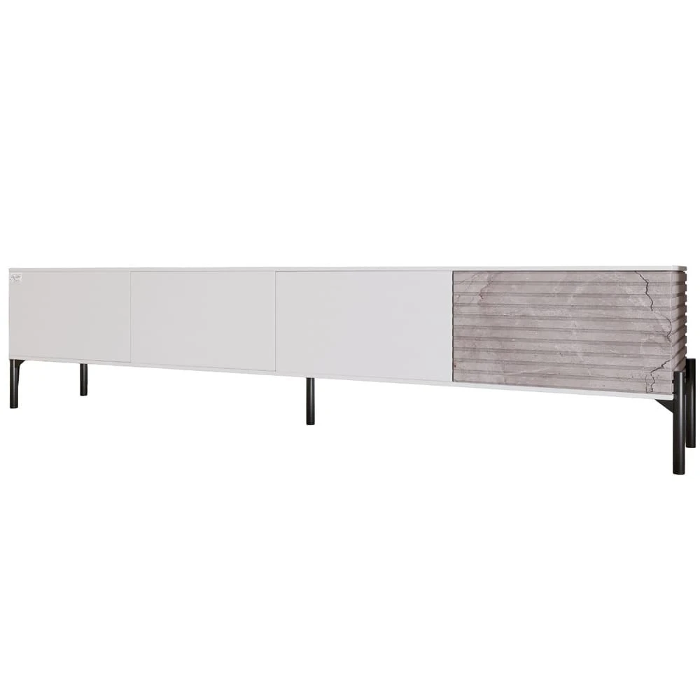 Тумба під телевізор на чорних металевих ніжках LION Грей Німфея Альба/Камінь (LION-042557)