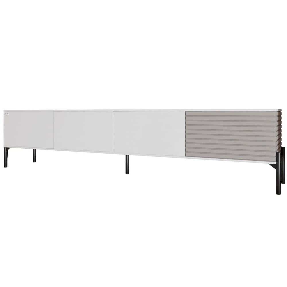 Эта тумба не только поражает своим внешним видом, но и обеспечивает надежность и долговечность. Черные металлические ножки придают стабильности, а также придают современный акцент. Вы сможете без проблем разместить на тумбе телевизор, а также хранить все необходимые аксессуары благодаря продуманному дизайну с достаточным количеством полок и отделений.