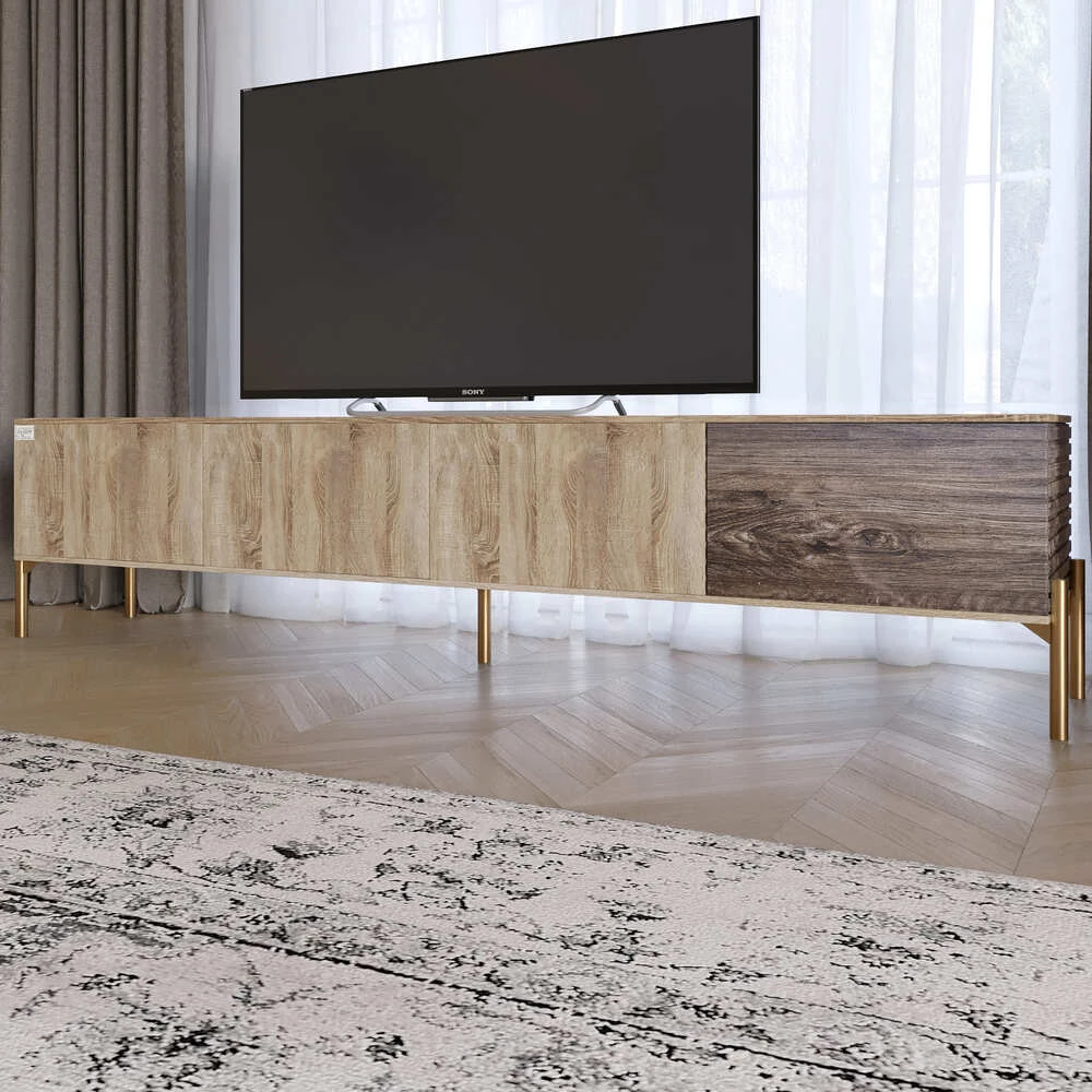 Тумба під телевізор на золотих металевих ніжках LION Грей Дуб Сонома трюфель/Дерево (LION-042540)