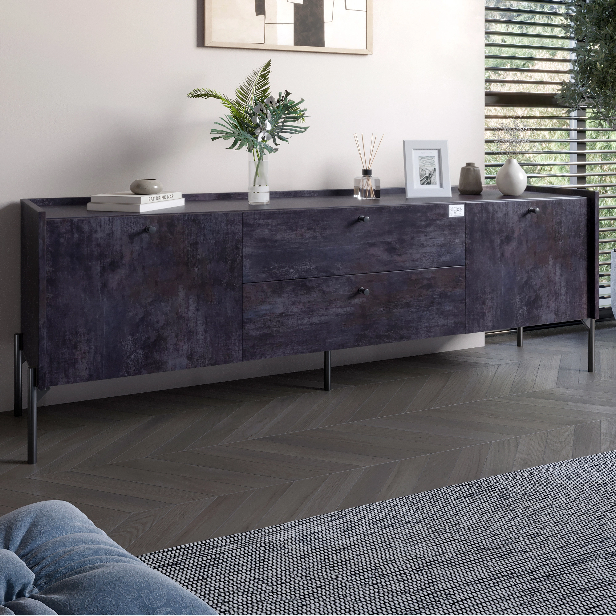 Тумба під телевізор з шухлядами LION Wood з чорними ніжками 180х50х40 см Бетон темний (LION-043124)
