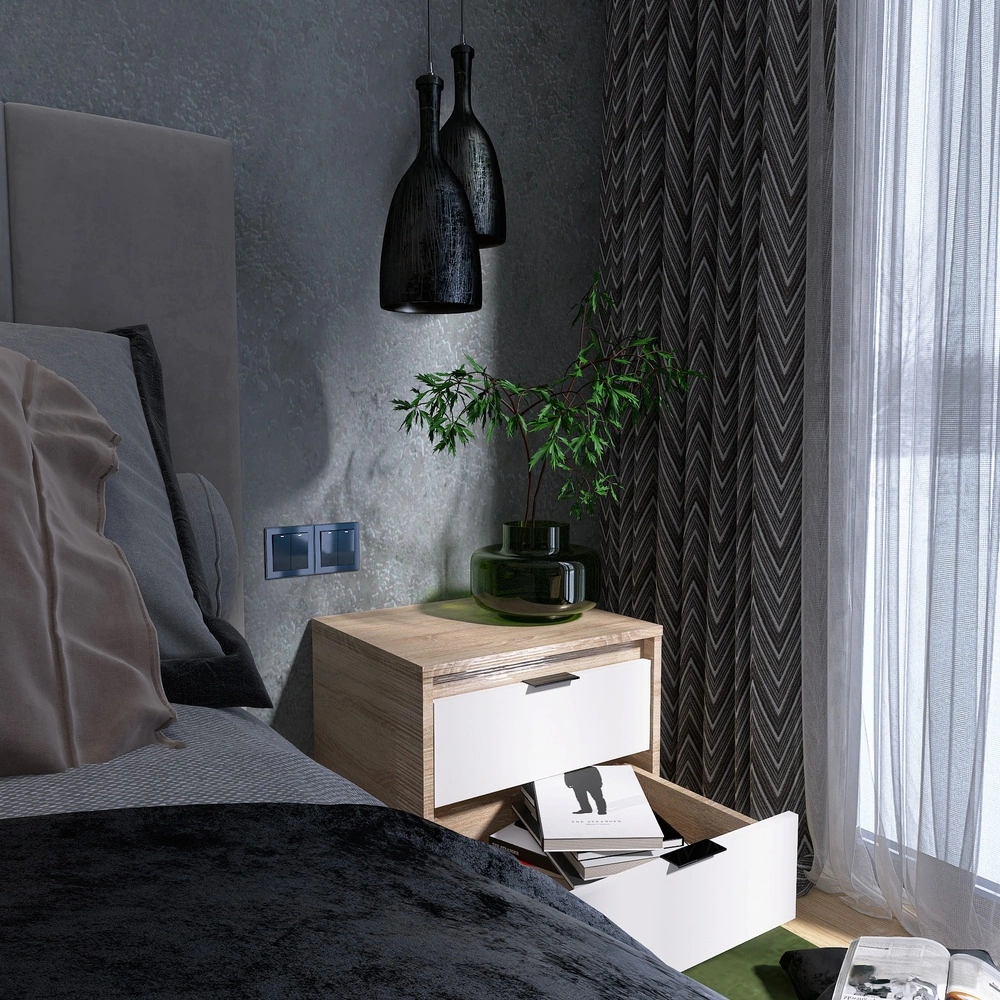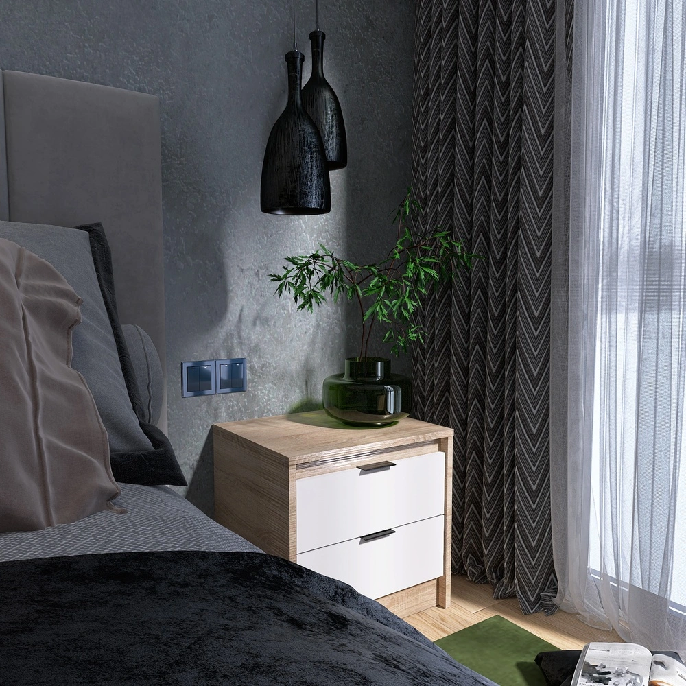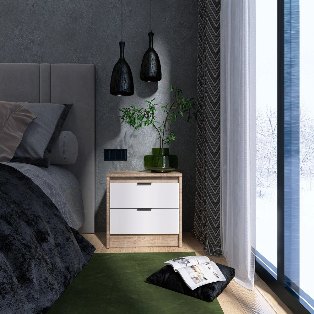 Тумба приліжкова Еверест Сіті - це ідеальне рішення для вашої спальні, яке поєднує в собі сучасний дизайн і практичність. Її компактні розміри дозволяють легко вписати її в будь-який інтер'єр, а стильний дуб сонома в поєднанні з білим кольором надає вашій кімнаті елегантності та затишку. Завдяки своїй продуманій конструкції, ця тумба стане не тільки стильним елементом, але й зручним місцем для зберігання ваших речей.