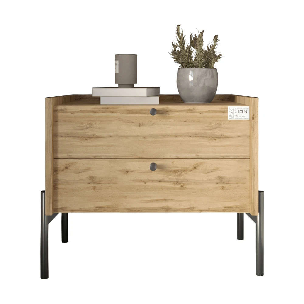 Тумба приліжкова LION Wood з двома шухлядами Дуб Аппалачі (чорні ножки) (LION-041346)