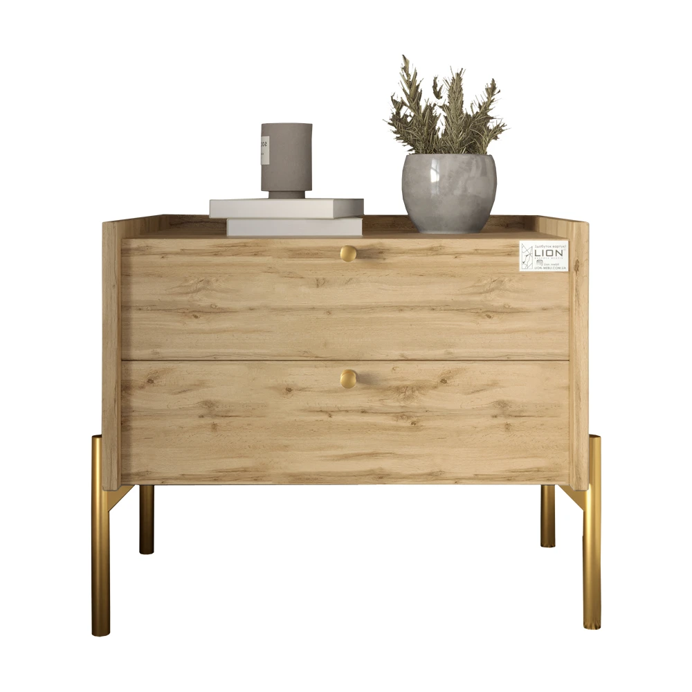 Тумба приліжкова LION Wood з двома шухлядами Дуб Артизан (золоті ножки) (LION-041347)