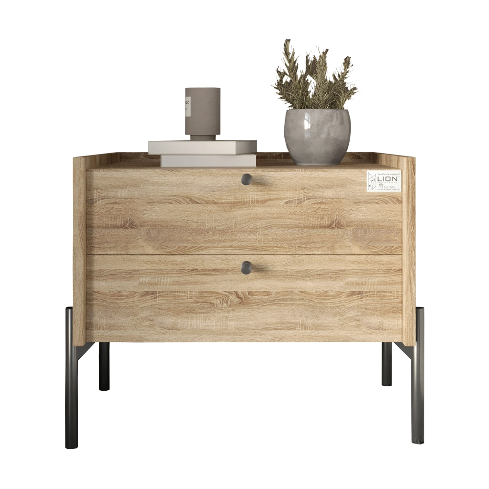 Тумба приліжкова LION Wood з двома шухлядами Дуб Сонома Трюфель (чорні ножки) (LION-041354)