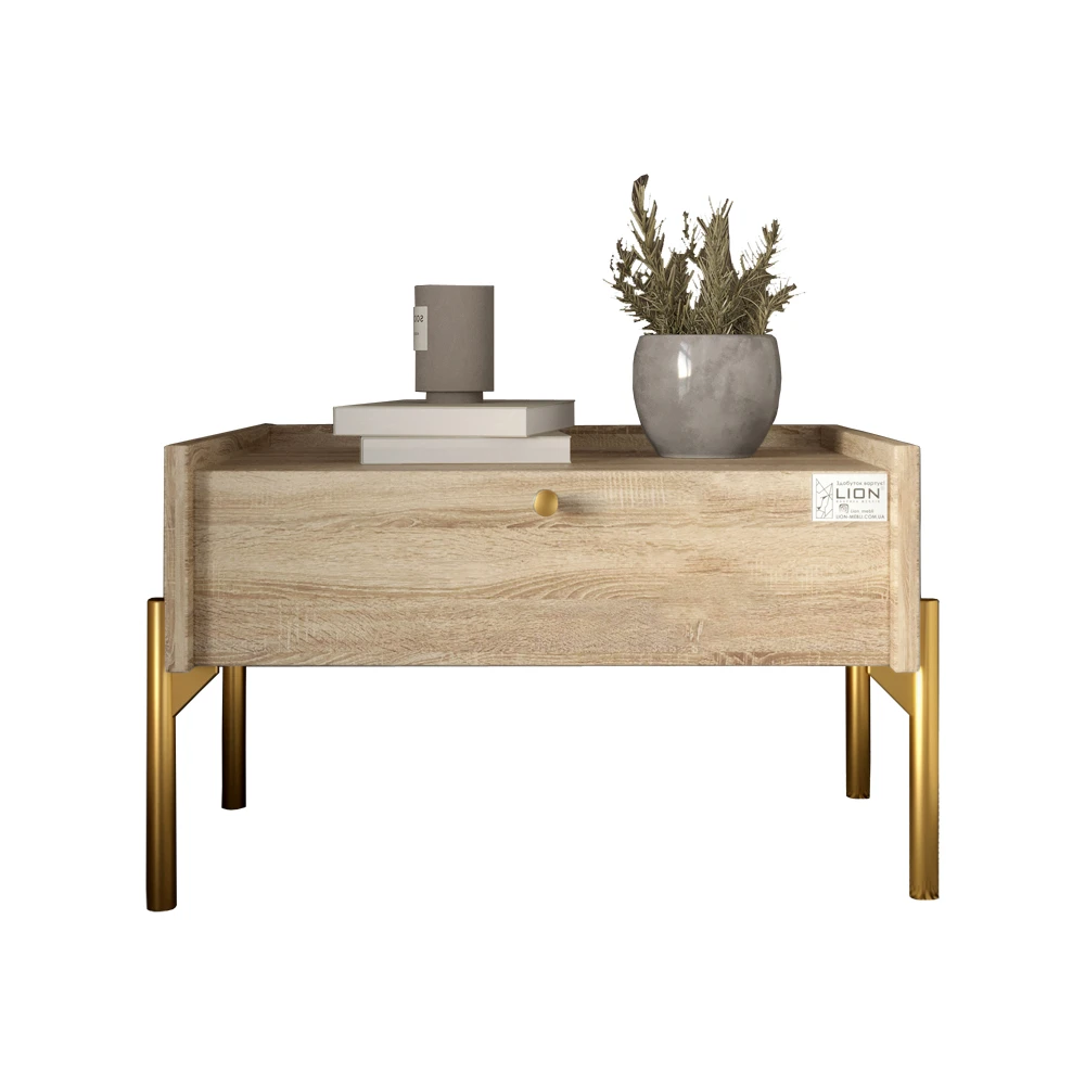 Тумба приліжкова LION Wood з однією шухлядою Дуб Сонома (золоті ножки) (LION-041320)