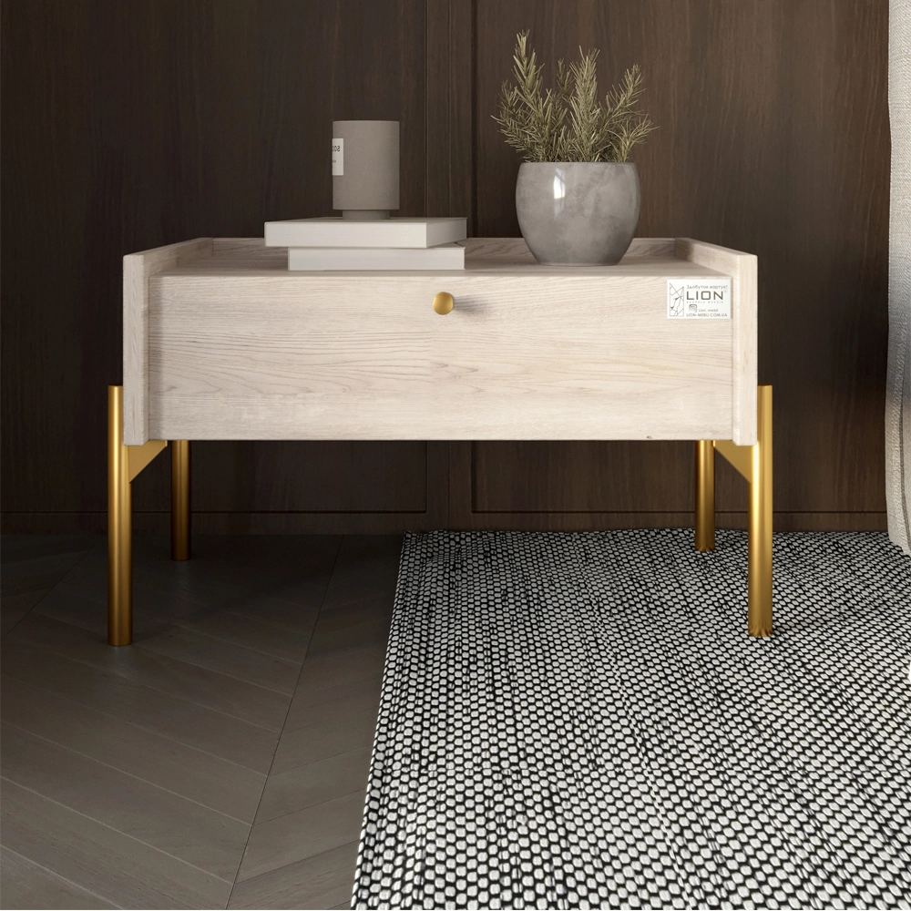 Тумба приліжкова LION Wood з однією шухлядою Самоа Димчастий (золоті ножки) (LION-041330)