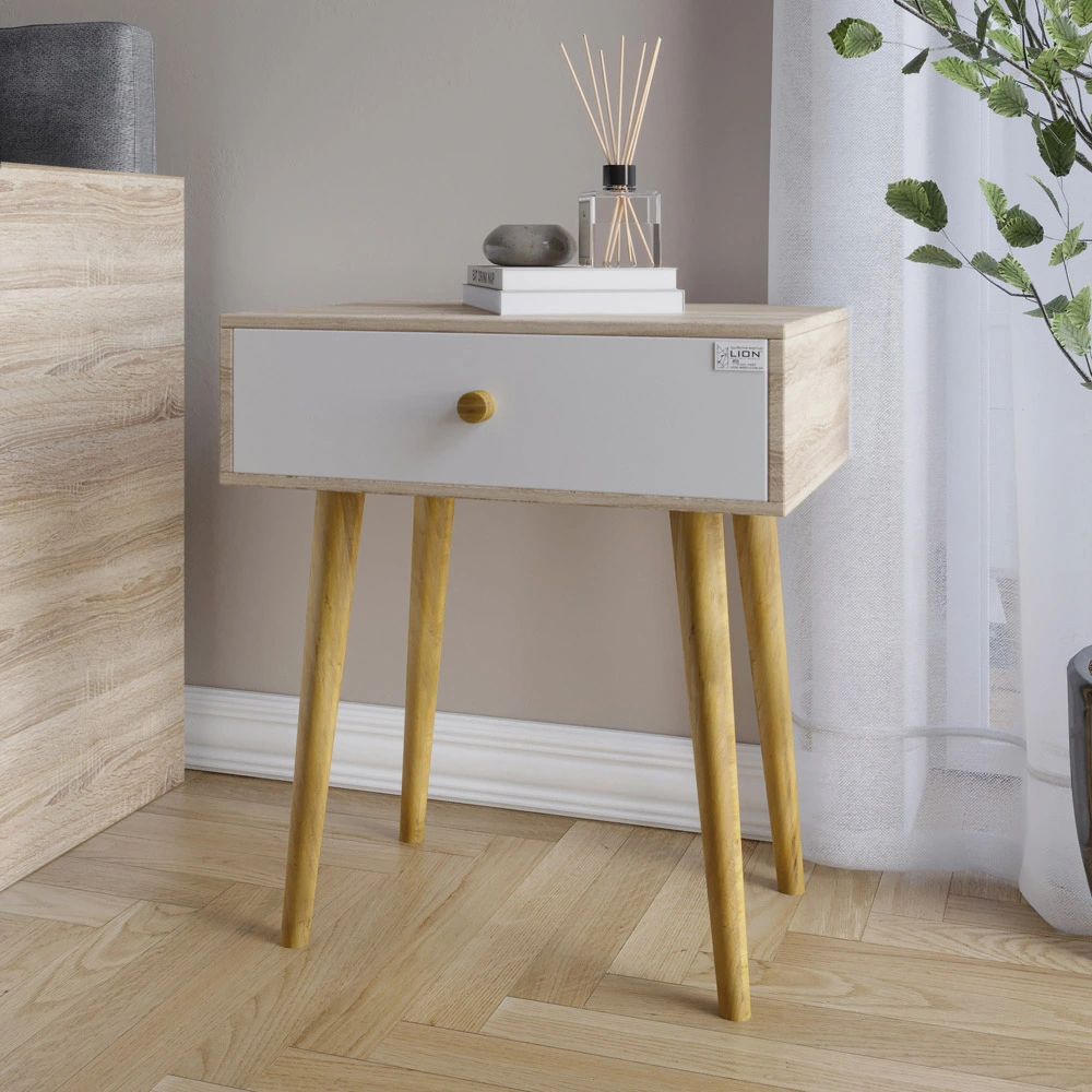 Тумба приліжкова LION Хьюге-4 Сонома/Німфея Альба (білий) (LION-041027)