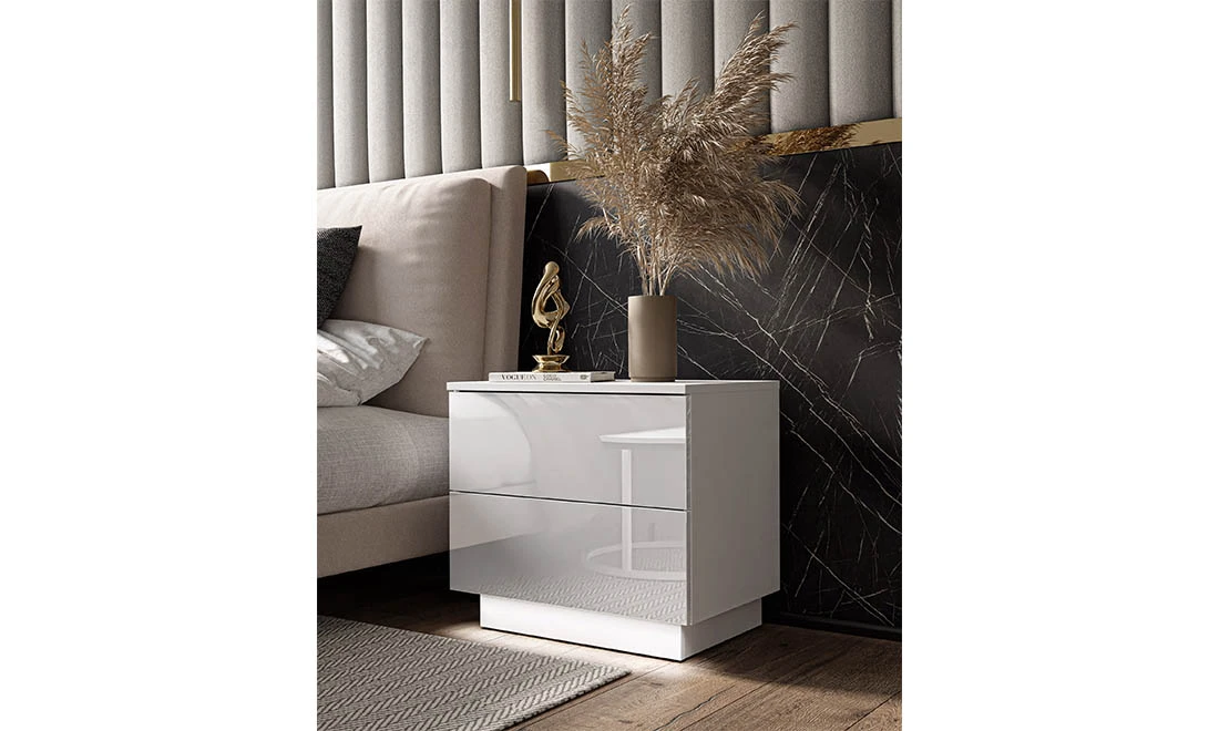 Тумба приліжкова Тіна 2Ш білий глянець з підсвіткою