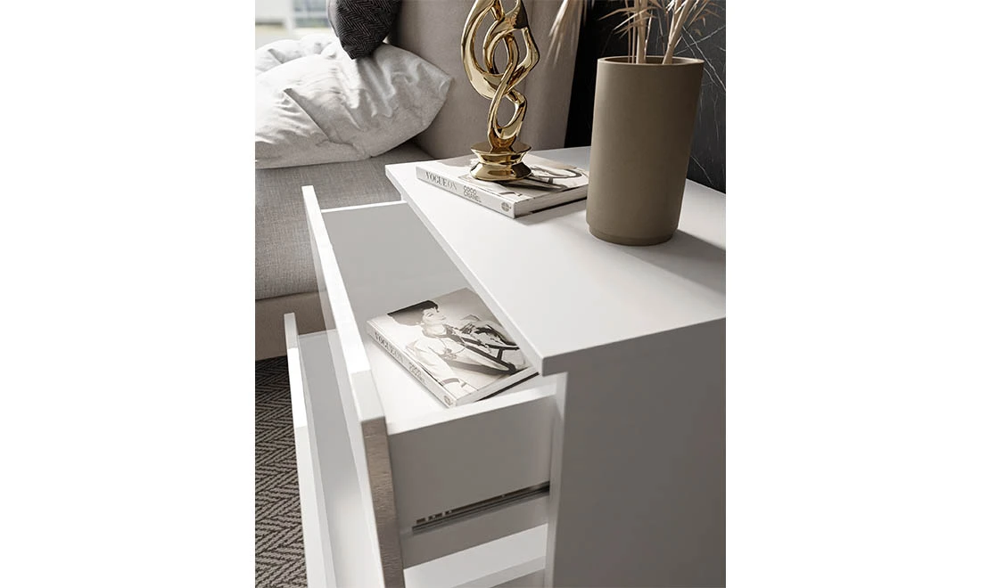 Тумба Тіна – стильне та функціональне доповнення до сучасної спальні. Виконана в білому кольорі з глянцевим фасадом і LED-підсвіткою, вона додає елегантності та створює затишну атмосферу.