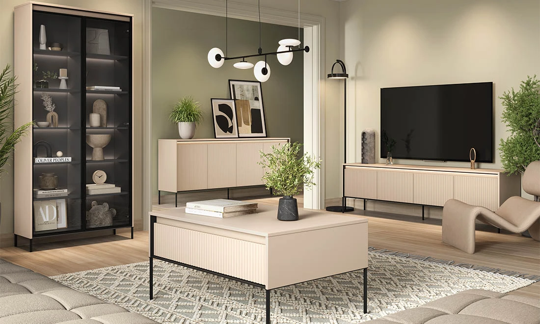 Тумба ТВ Тренд в бежевому кольорі - це не тільки зручне місце для розташування техніки, але і стильний акцент вашого інтер'єру.