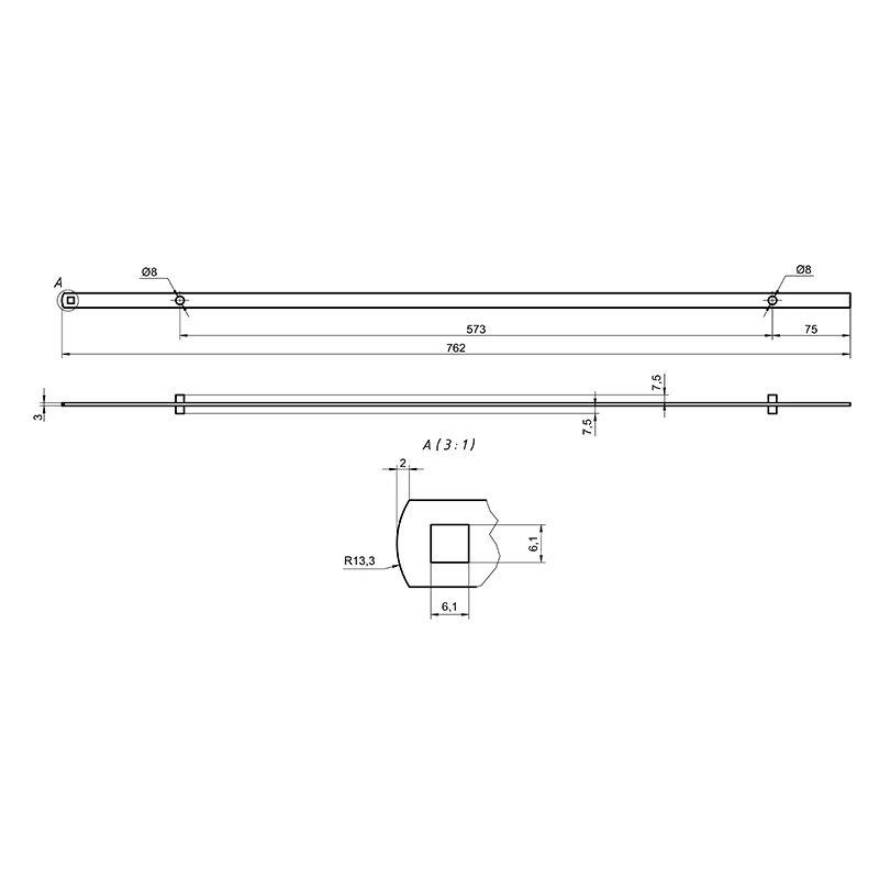 Тяга плоска вертикальна RZ 055-1-76 призначена для використання у щитових та електрощитових замках із вертикальною системою замикання. Вона забезпечує передавання руху від центрального механізму замка до верхнього або нижнього ригеля, формуючи надійне багатоточкове замикання. Цинкове покриття захищає деталь від корозії та зносу, що особливо важливо для експлуатації в технічних, промислових і комерційних середовищах.
