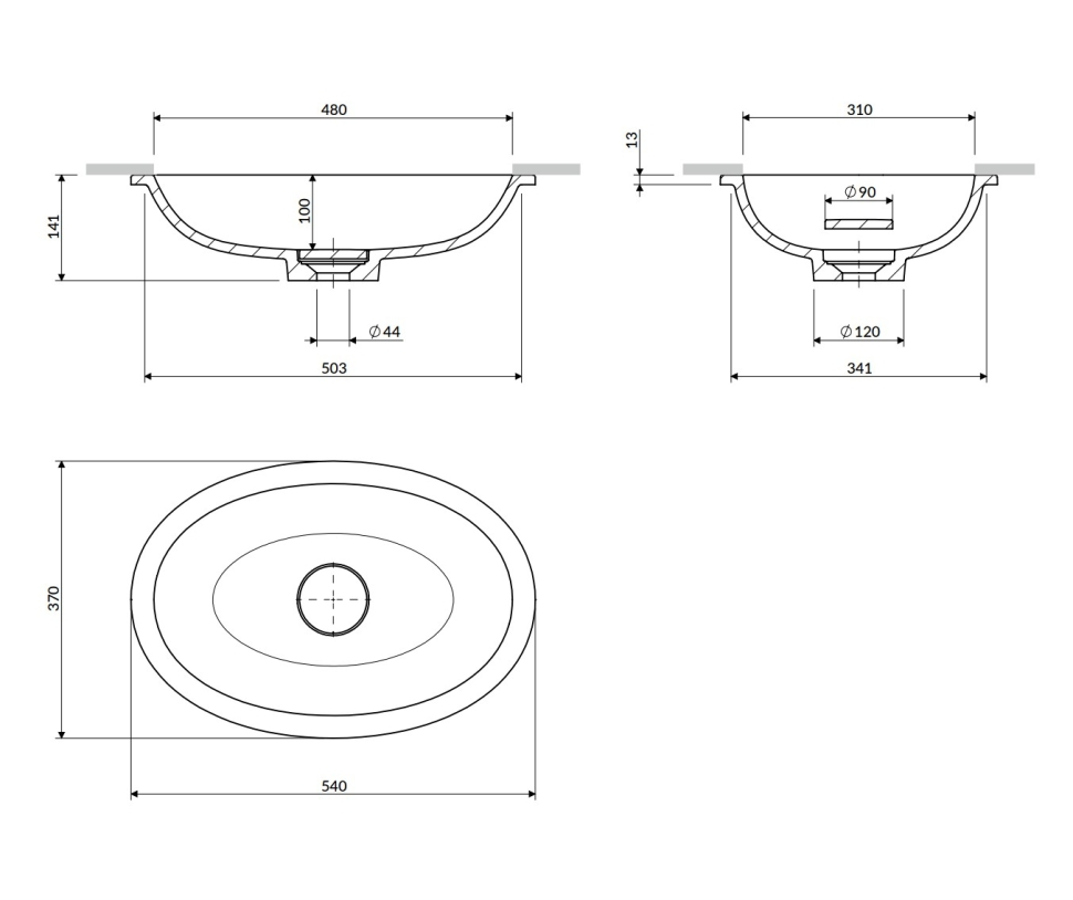 умивальник Omnires Shell 48х31 matt black lava (SHELL480UPBLV)