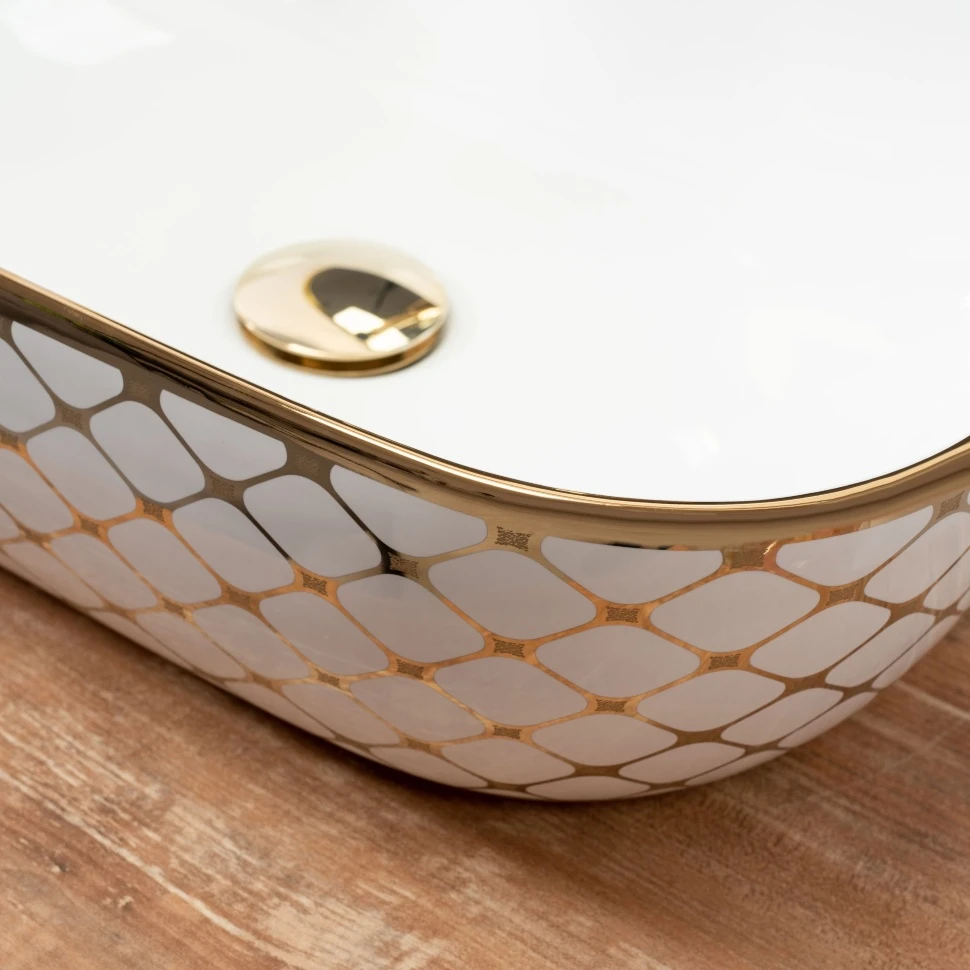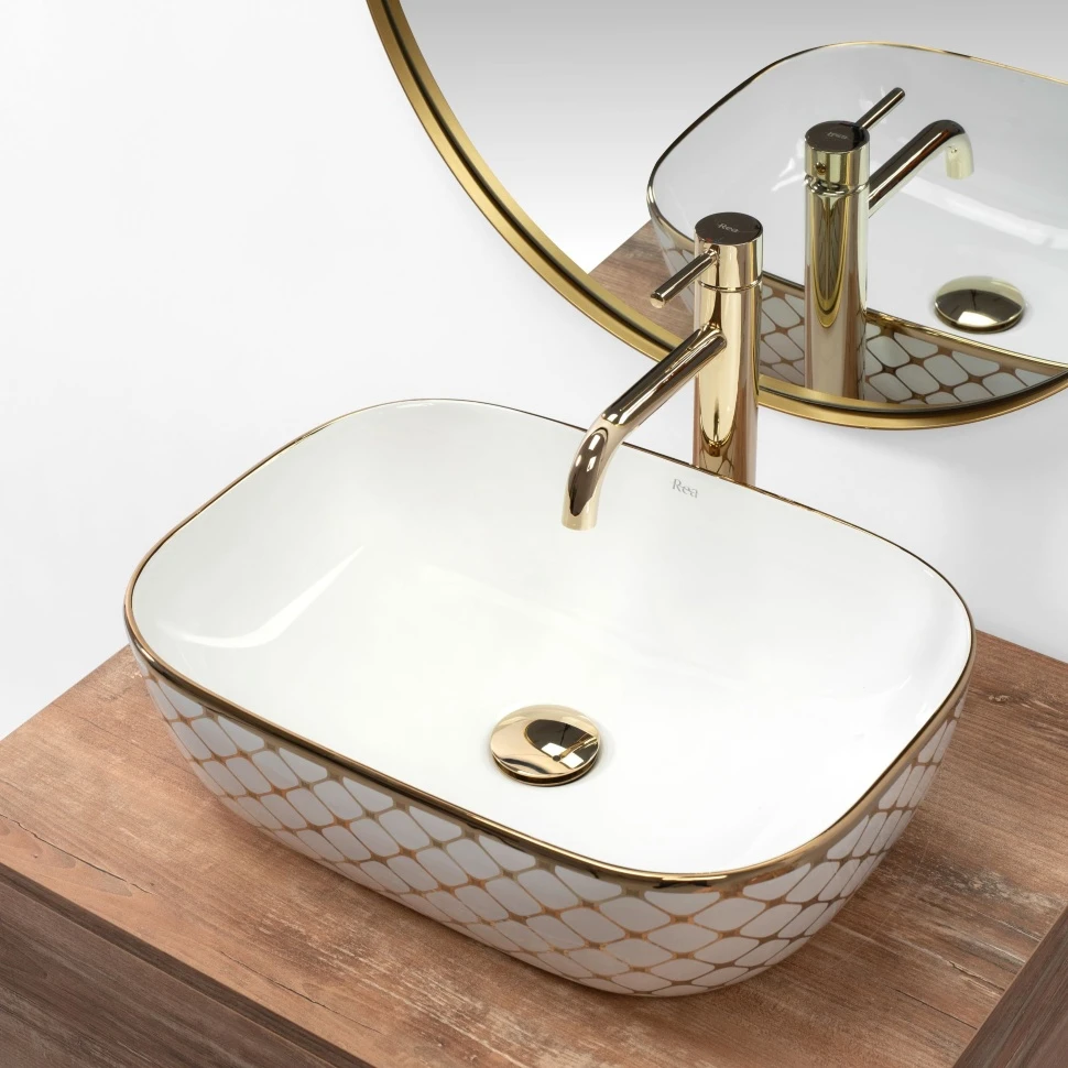 умивальник Rea Belinda Diamond 46,5x33,5 white /gold (REA-U8471)