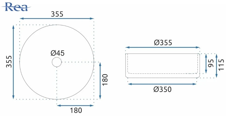умивальник Rea Cristal 35,5x35,5 transparentny (REA-U9670)