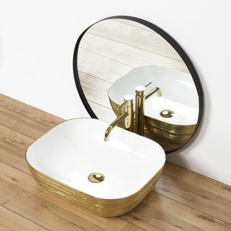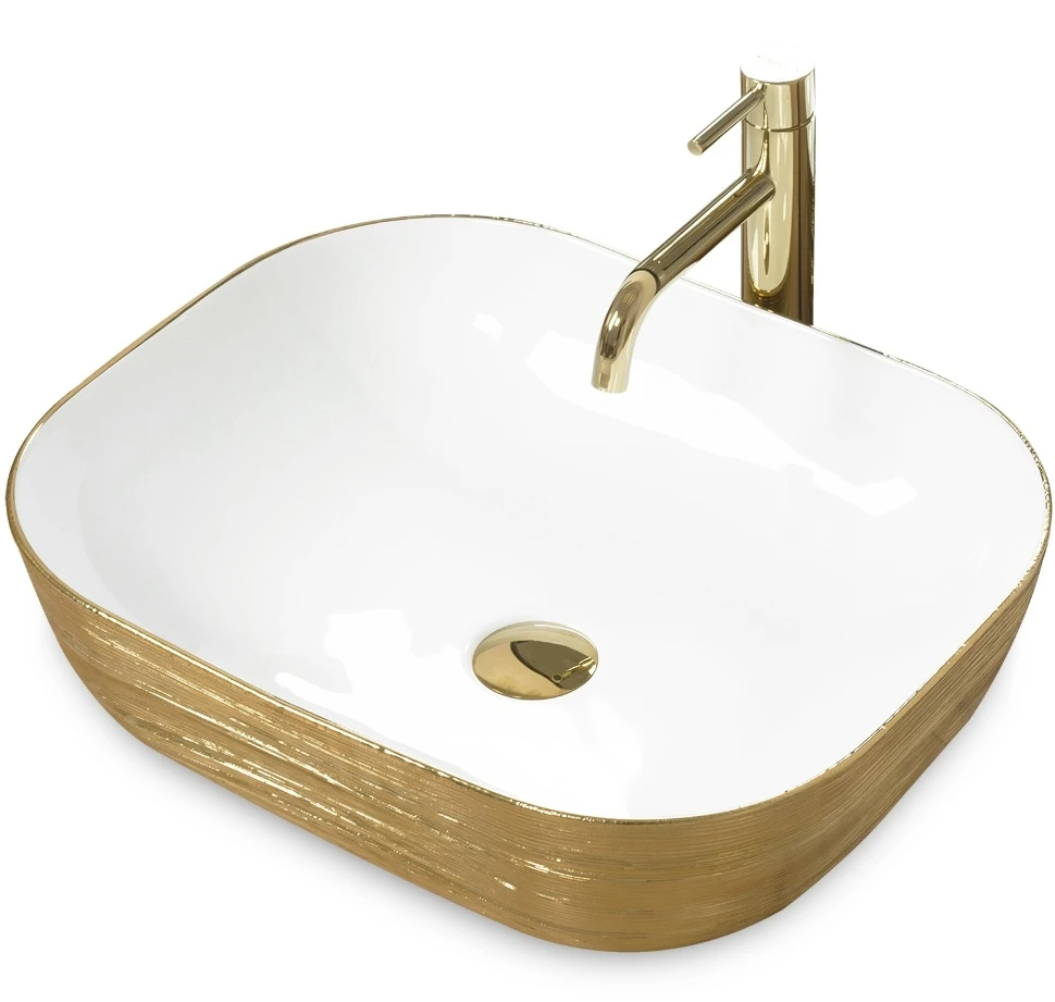 умивальник Rea Floria 51x41 gold/white (REA-U0027)