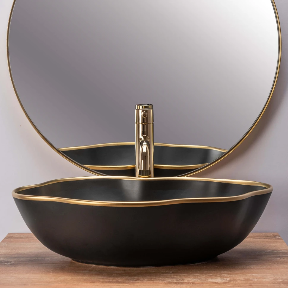 умивальник Rea Pearl 51,5x37,5 black gold (REA-U0692)