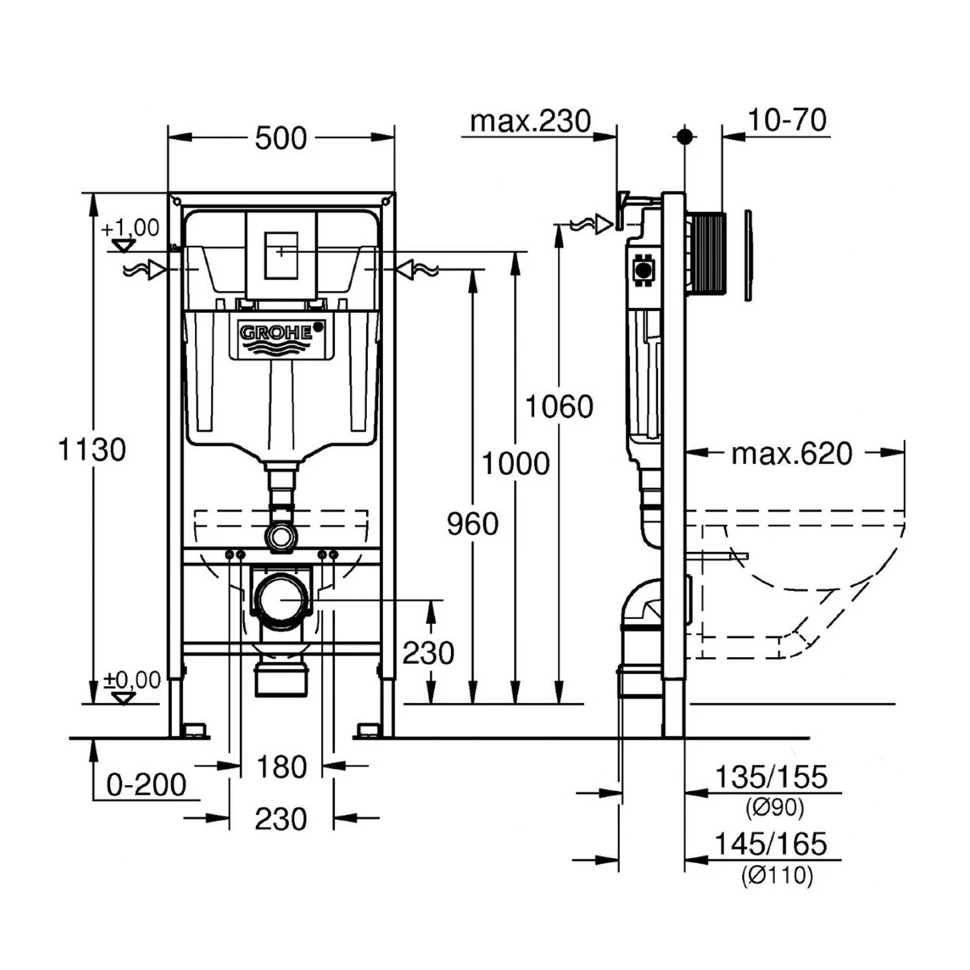 унітаз Omnires Ottawa 49x37 rimless підвісний, сидіння дюропласт + інсталяція Grohe Rapid Sl (387210