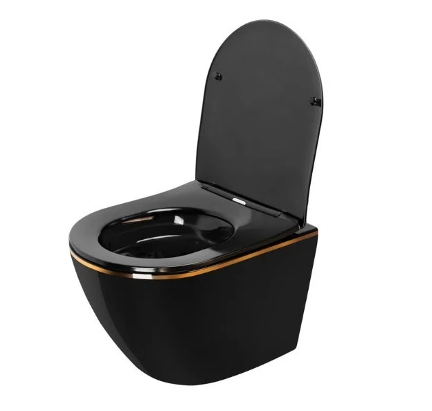 унітаз Rea Carlo gold/black без обідка, сидіння дюропласт повільно падаюче (REA-C8800)