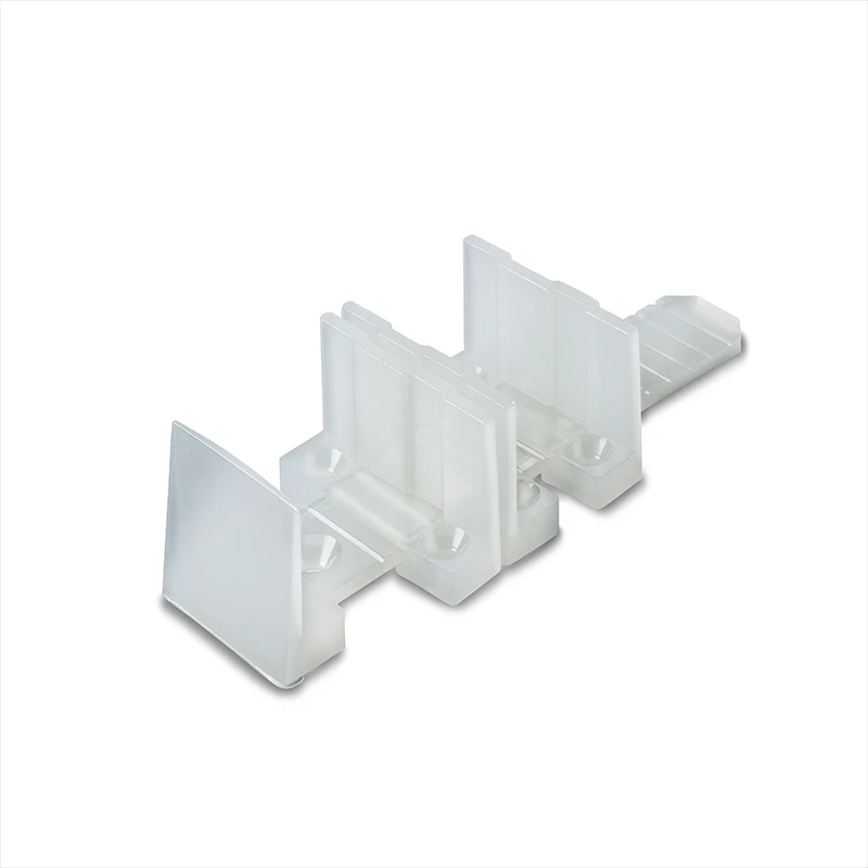 Універсальний напрямний елемент розрахований на одинарні чи подвійні двері. Розміри: можна використовувати одинарні двері завтовшки від 8 мм до 100 мм, а подвійні від 16 до 45мм. Матеріал – поліпропілен.