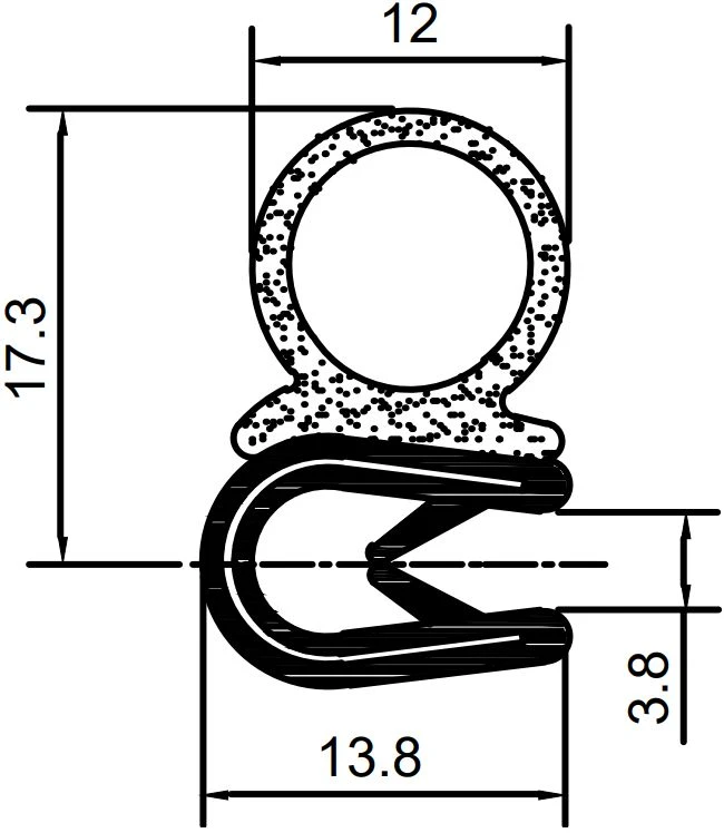 Уплотнитель багажника RZ Y1.005, H=19,2 мм, PVC/EPDM, зажим 1-3 мм