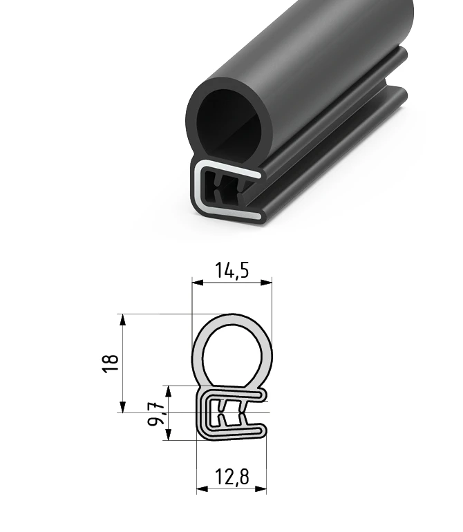 Ущільнювач «Essentra - Mesan» №340.09.029 (1418), розміри: висота 12,8 мм, ширина 22,85 мм, притиск 13,15 мм. Використовувані матеріали: сталь, каучук (етилен-пропілен-дієн-терполімер). Колір: чорний (ваш колір 100000м). Температурні режими: від -20 до 120. Цей ущільнювач застосовується на виробах товщиною металу до 3,5мм і має ребристу поверхню всередині. На замовлення можна змінити температурний режим.