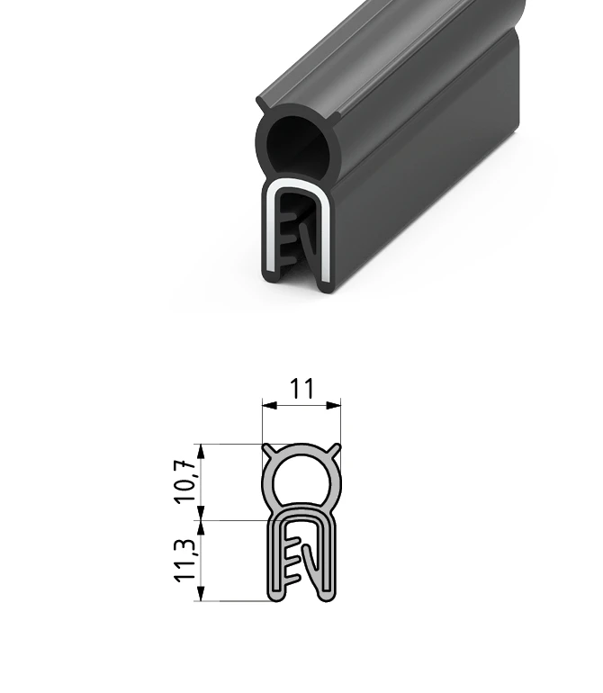 Ущільнювач Essentra - Mesan №340.09.107, розміри: висота 22мм, ширина 11мм, притиск 9мм. Використовувані матеріали: сталь, каучук (етилен-пропілен-дієн-терполімер). Колір: чорний (ваш колір 100000м). Температурні режими: від -20 до 120. Цей ущільнювач застосовується на виробах товщиною металу до 3,5мм і має ребристу поверхню всередині. На замовлення можна змінити температурний режим. Ціну та наявність на складі уточнюйте у менеджера.