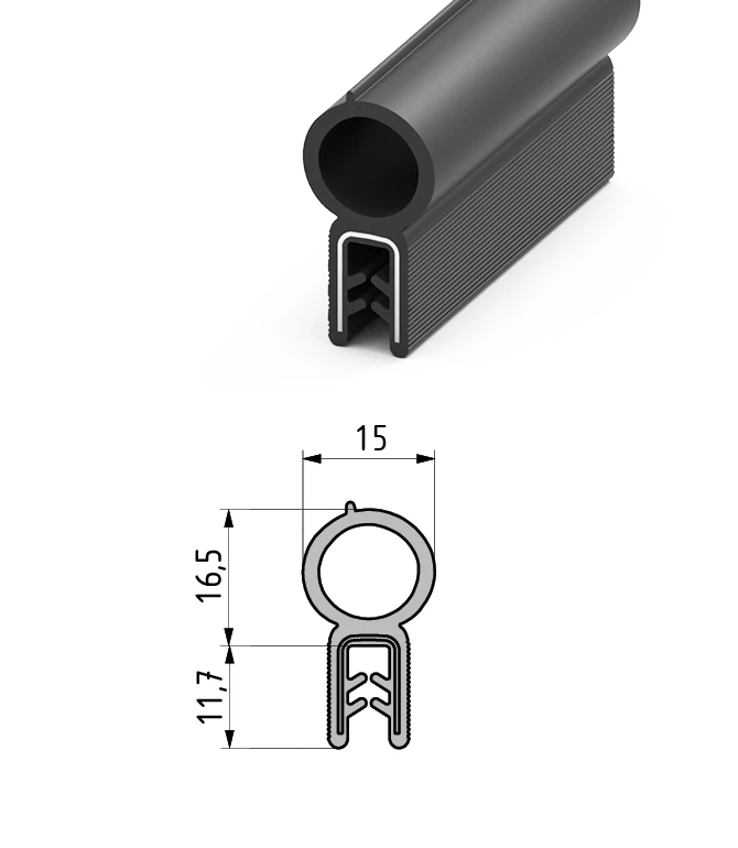 Ущільнювач «Essentra - Mesan» №340.09.124 (1422), розміри: висота 28,8 мм, ширина 15 мм, притиск 13,3 мм. Використовувані матеріали: сталь, каучук (етилен-пропілен-дієн-терполімер). Колір: чорний (ваш колір 100000м). Температурні режими: від -20 до 120. Цей ущільнювач застосовується на виробах товщиною металу до 3,5мм і має ребристу поверхню всередині. На замовлення можна змінити температурний режим.