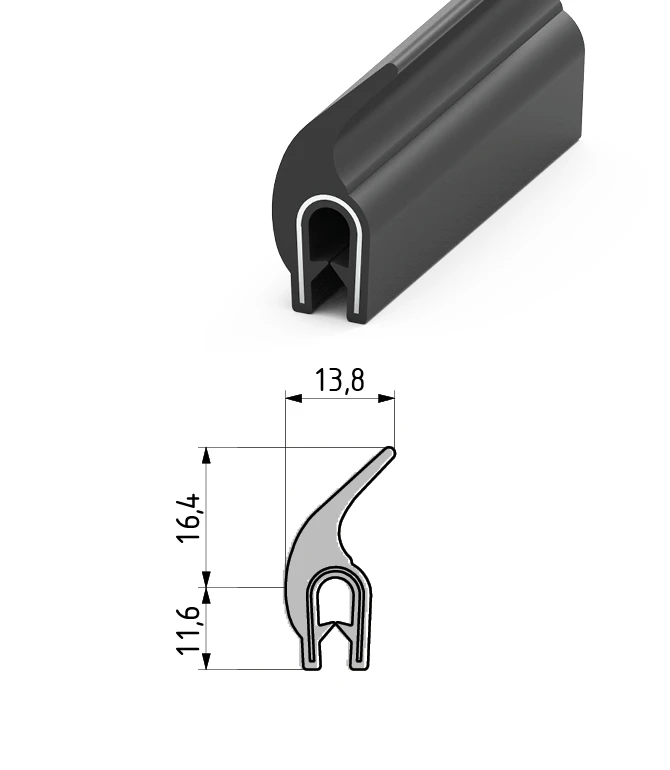 Ущільнювач "Essentra - Mesan" №340.09.206, розміри: висота 28мм, ширина 9(13,8)мм, притиск 14,5мм. Використовувані матеріали: сталь, каучук (етилен-пропілен-дієн-терполімер). Колір: чорний (ваш колір 100000м). Температурні режими: від -20 до 120. Цей ущільнювач застосовується на виробах товщиною металу до 4мм і має ребристу поверхню всередині. На замовлення можна змінити температурний режим. Ціну та наявність на складі уточнюйте у менеджера.