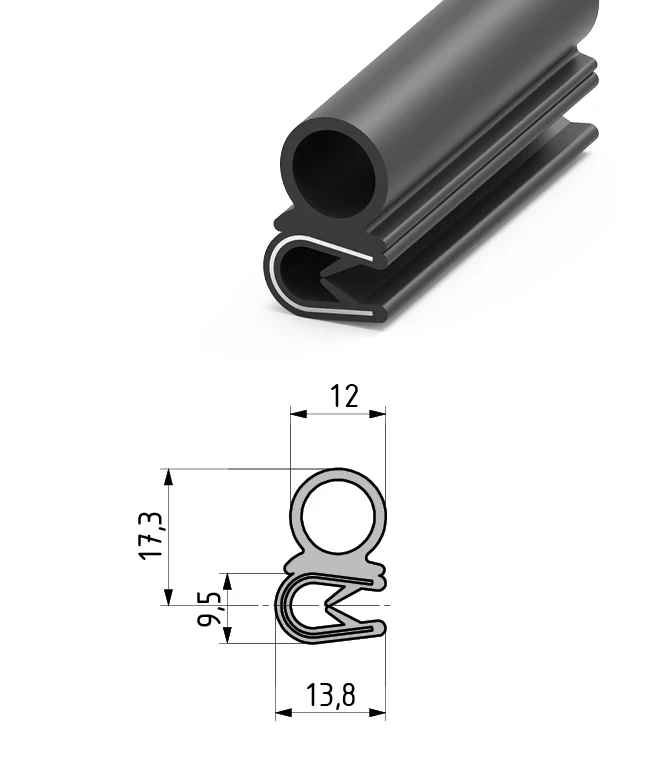Ущільнювач «Essentra – Mesan» №340.09.705, розміри: висота 22мм, ширина 13,8мм, притиск 12мм. Використовувані матеріали: сталь, полівінілхлорид, каучук (етилен-пропілен-дієн-терполімер). Колір: чорний (всередині червоний) (ваш колір від 100000м). Температурні режими: від -20 до 120. Цей ущільнювач застосовується на виробах товщиною металу до 3,5мм і має ребристу поверхню всередині. На замовлення можна змінити температурний режим.