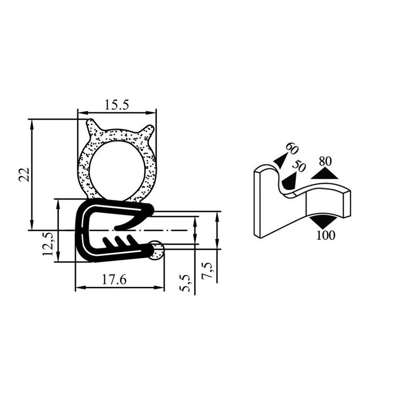 Самозатискний накладний ущільнювач дверей RZ використовується для герметизації країв металевих корпусів у промисловості.