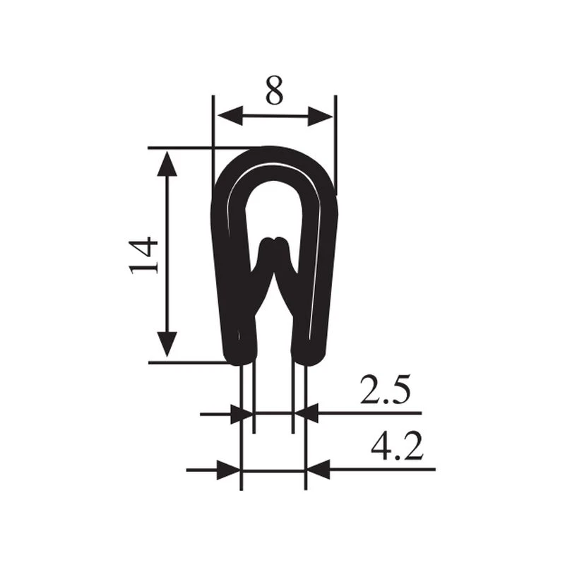 Гумовий накладний ущільнювач для металевих дверей RZ належать до гумотехнічних виробів для герметизації металевого листового краю.