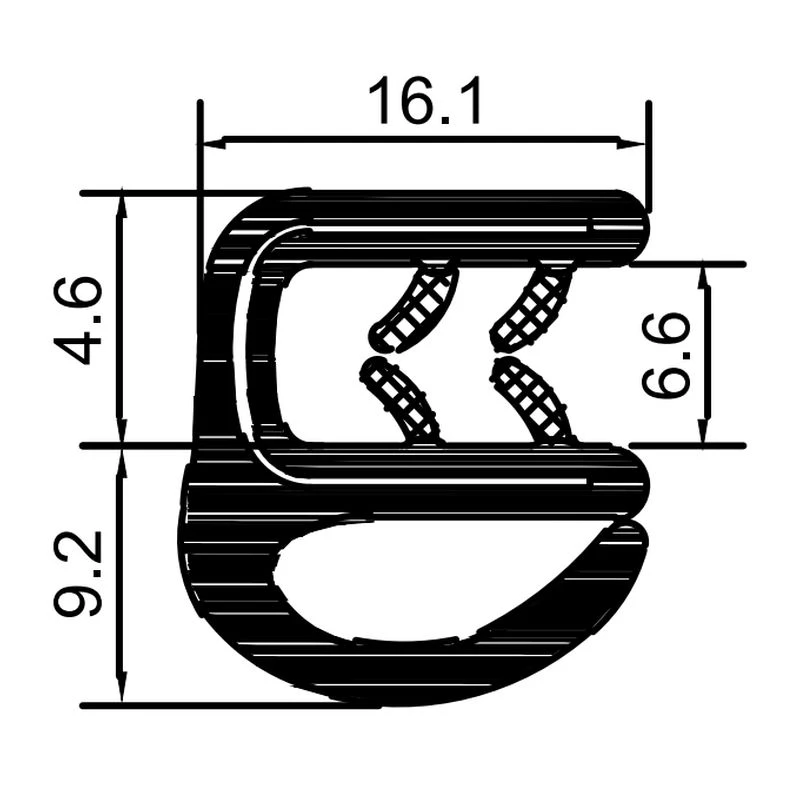 Армований накладний ущільнювальний профіль ПВХ RZ належить до гумотехнічних виробів для герметизації металевого листового краю.
