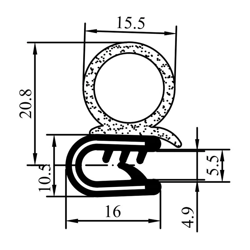 Накладний гумовий ущільнювач кришки багажника RZ використовують для захисту країв металевих корпусів.