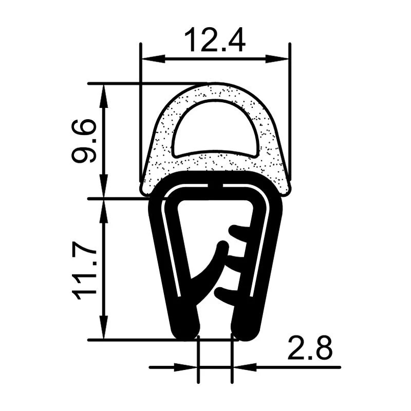 Гнучка накладна ущільнювальна гумка для металевих дверей RZ використовується для захисту країв металевих корпусів.