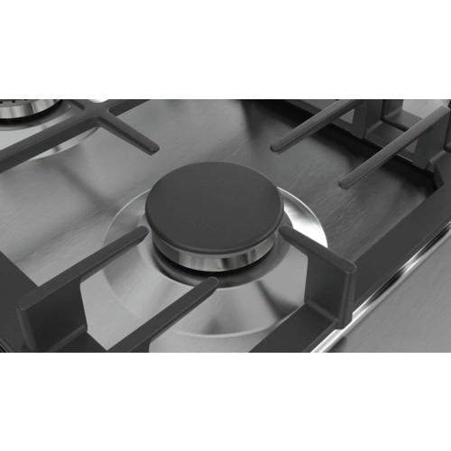 Bosch PCH6A5B90R — газова варильна поверхня шириною 60 см із корпусом з нержавіючої сталі та чавунними решітками. Вона поєднує в собі надійність, сучасний дизайн і зручне керування, ідеально підходить для щоденного приготування різноманітних страв.