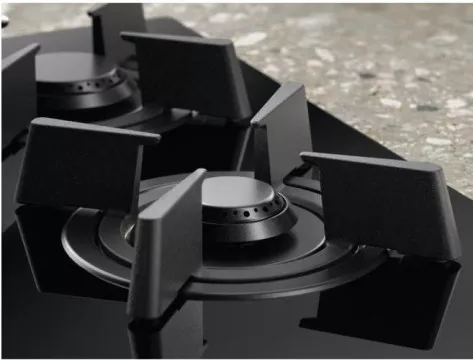Чорні матові конфорки з вертикальним полум'ям можна мити в посудомийній машині та економити до 20% енергії за рахунок швидшого нагрівання. Точніше полум'я нагріває тільки ту сковороду, яку ви використовуєте, для більшої ефективності.