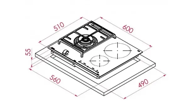 - Розміри для вбудовування 5.5 х 60.0 х 51.0 см