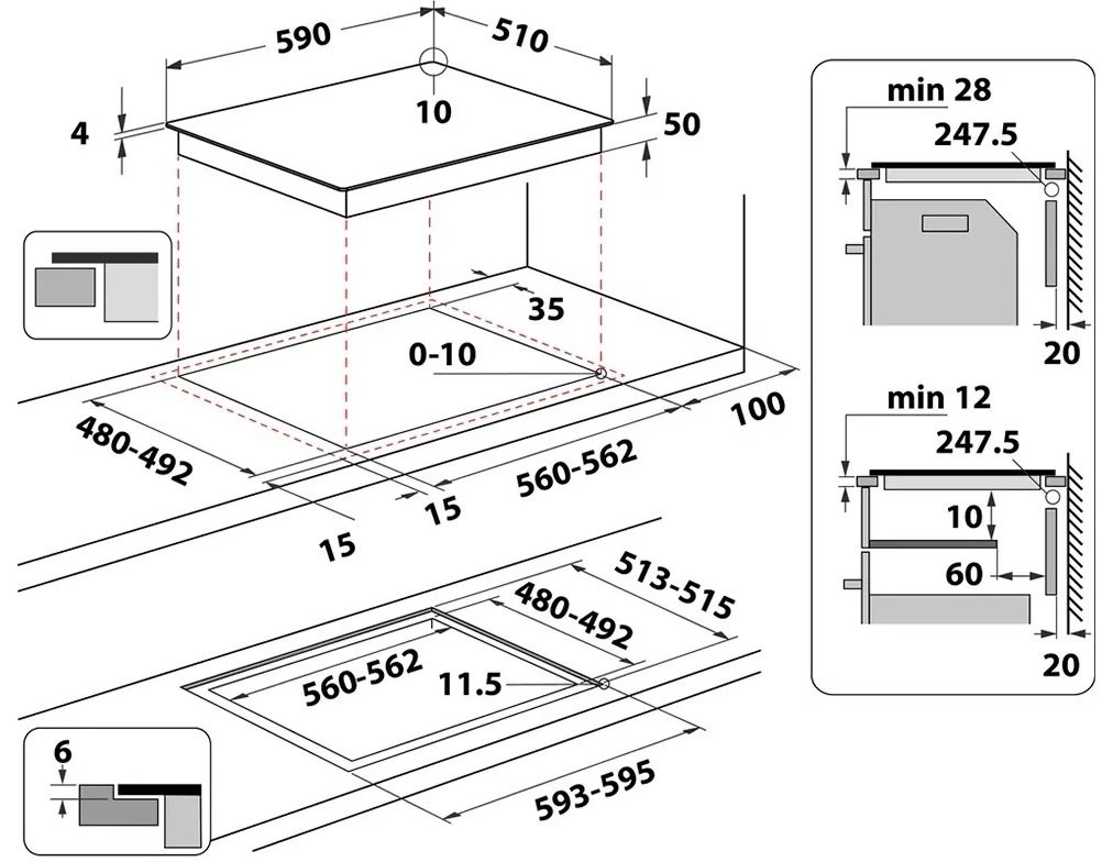 - Розміри для вбудовування 560-562 х 480-482