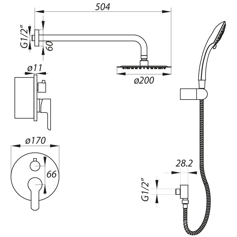 - Особливості Розміри ручної лійки: 23х10 см. Розміри стельової лійки: 20х20 см.