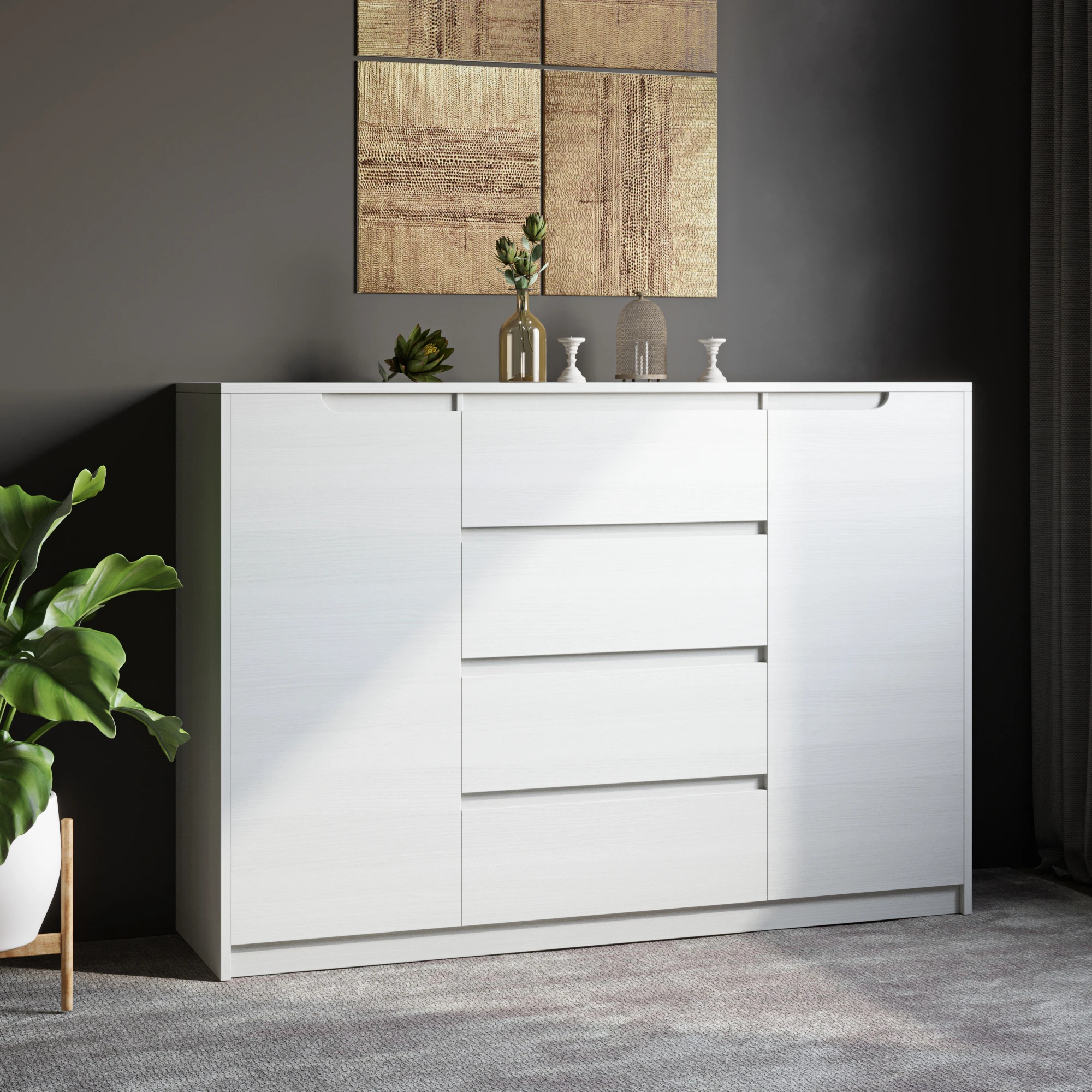 Підкресліть елегантність вашого інтер'єру з великим комодом Еверест Мікс-3, який стане ідеальним доповненням до будь-якої кімнати. Завдяки сучасному дизайну та кольоровій гамі німфея альба, цей комод не лише вражає своїм виглядом, а й забезпечує достатньо місця для зберігання ваших речей. Його розміри 140х38х97 см роблять його практичним вибором для будь-якого простору.