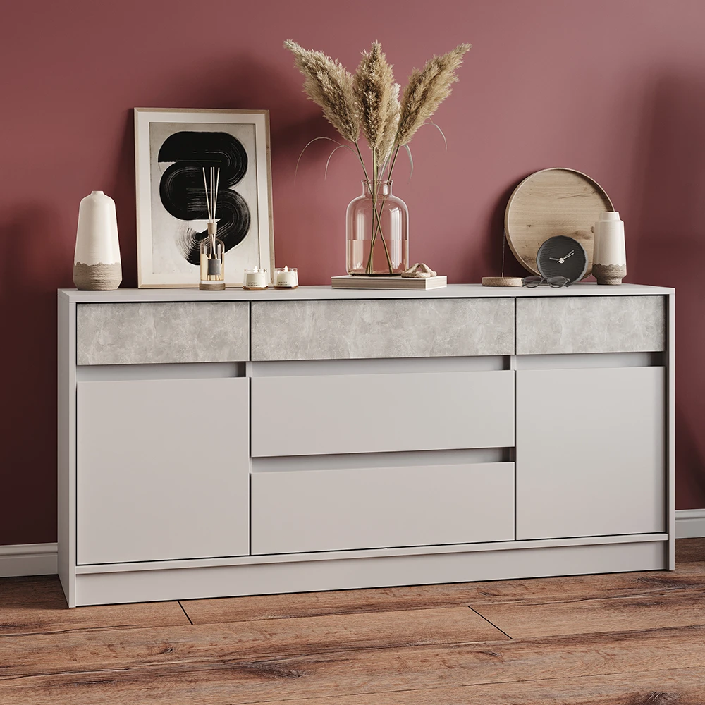 Великий комод із дверима та шухлядами Еверест Стайл-1600 160,2х39х75,4 см Кашемір/Бетон (DTM-071159)