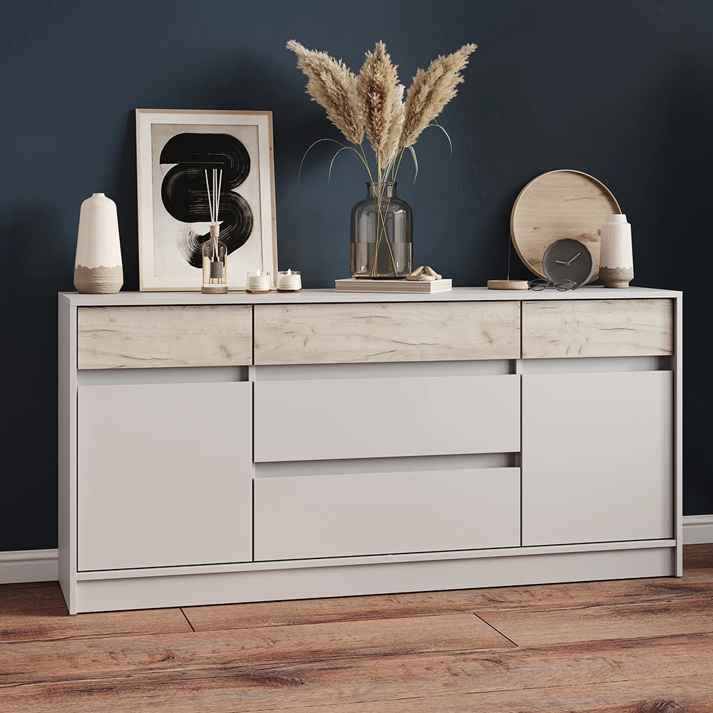 Виготовлений з надійних матеріалів, комод гарантує довговічність і стійкість до повсякденного використання. Корпус та фасади з ЛДСП забезпечують високу міцність, а ПВХ-крайка захищає від подряпин і відколів. Завдяки телескопічним напрямним, шухляди легко і безшумно висуваються, що робить їх використання максимально комфортним.