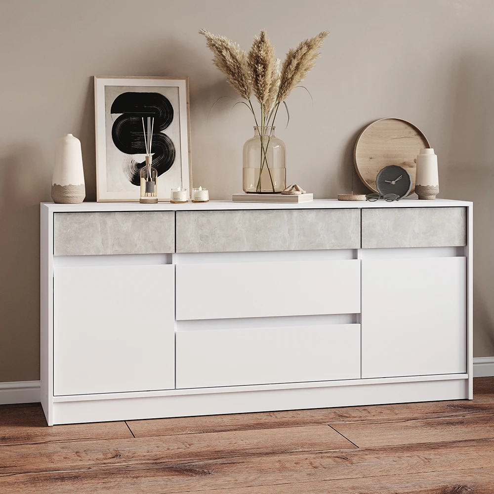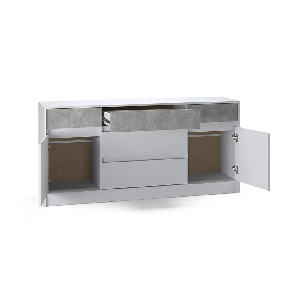 Великий комод із дверима та шухлядами Еверест Стайл-1600 160,2х39х75,4 см Німфея Альба (білий)/Бетон