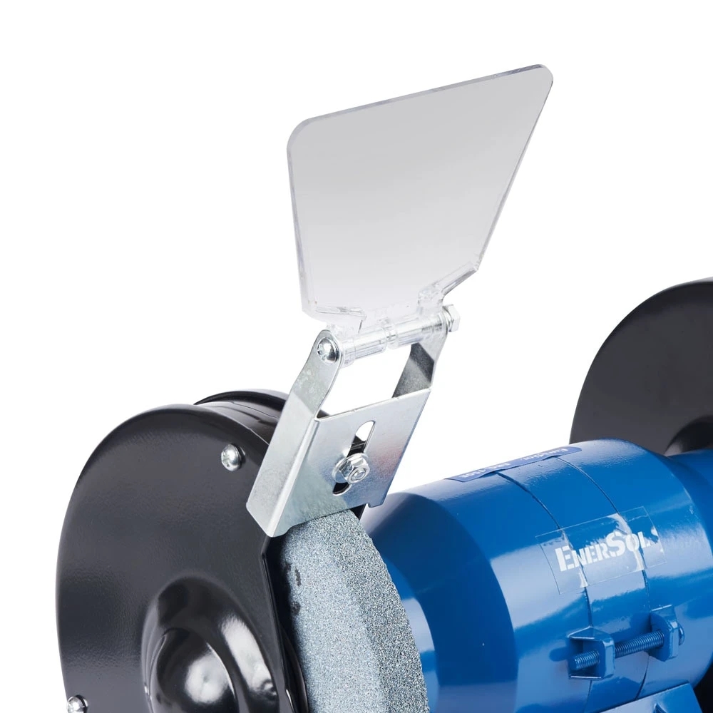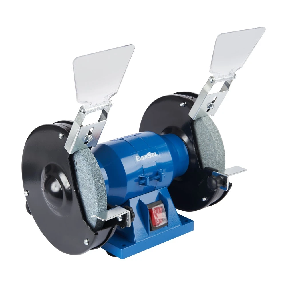 Верстат заточувальний EnerSol EBG-150E з двома абразивними кругами діаметром 150 мм і потужністю 150 Вт призначений для заточування інструменту та шліфування деталей. Швидкість обертання 2990 об/хв забезпечує стабільну роботу без надмірного нагрівання кромок. Захисні екрани, опорні площадки та гумові ніжки сприяють безпечному та комфортному використанню в обмеженому просторі.