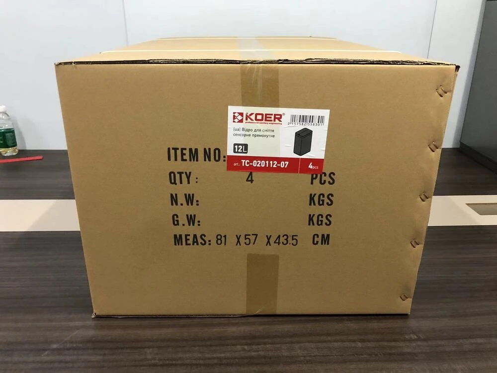 Відро для сміття сенсорне прямокутне Koer TC-020112-07 12 л колір графіт (KR5583)